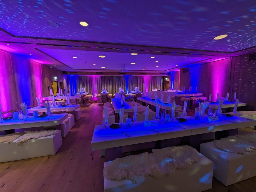 Entweder erleben Sie im Erdgeschoss bayrische Gemütlichkeit mit regionalem Catering und passender „Musi“ („Cozy“) oder tauchen im Obergeschoss in eine kleine Winterwelt – mit „modernem“ Buffet und Musik vom DJ ein („Cool“)